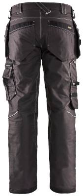 Kaksi ekstra leveää naulataskua vahvistettuna Corduralla, ommeltu työkalulenkeillä ja ekstra työkalupidikkeellä. Sivutaskut, vasemmalla puolella ekstra tasku vetoketjulla. Kaksi Cordura-vahvistettua takataskua palkeella, yksi läpällä. Vahvistettu leveä mittatasku, jossa kynätasku ja kaksoispuukkopidike. Reisitasku puhelintaskulla.