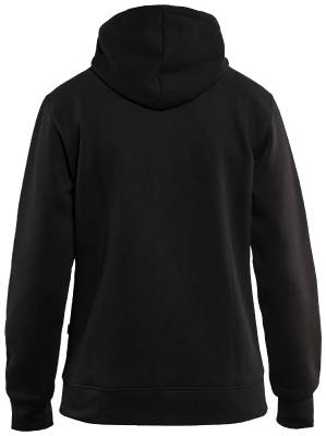 Naisten malli. Kiinteä, säädettävä huppu. Yksisuuntainen muovivetoketju. Kengurutasku, jonka sisällä on puhelintasku. Helmassa resori. Hihansuissa resori.