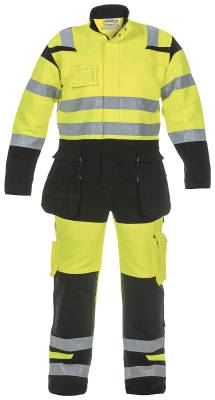 Hyvin istuvat kokohaalarit useilla työskentelyä helpottavilla taskuilla sekä erinomaisella näkyvyydellä.