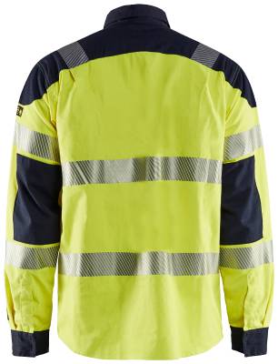 Paloturvallinen ja metalliton multinorm-paita, varoitusluokat 2 ja 3. Paidan materiaalit takaavat hyvän mukavuuden ja lisäävät istuvuutta ja hyvää liikkumisvapautta. Hyväksynnät: EN 1149-5, EN ISO 11612 A1, A2, B1, C1, EN ISO 20471, XS-S luokka 2, M- luokka 3, IEC 61482-2, luokka 1. ATPV 8,5, cal/ cm2. Hyväksynnät: ATPV: 8,5 cal/cm2. EN 1149-5. EN ISO 11612 A1, A2, B1, C1. EN ISO 20471, XS-S luokka 2, M- luokka 3. IEC 61482-2, luokka 1. Merkkejä ulkopuolella. Muoviset painonapit. Paitakaulus. Rintataskut, joissa läpät ja piilotetut painonapit, sekä tasku kynäaukolla. Ei sisällä metallia.