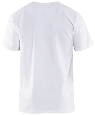 V-pääntie joustoneuletta. Vahvistettu niska- ja hartiasauma. Materiaali: 95 % puuvillaa, 5 % elastaania, jersey. Paino: 210 g/m2.