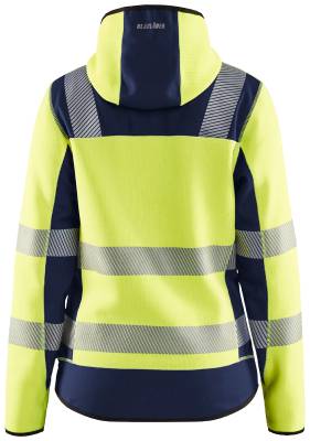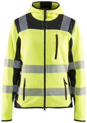 Huomiotakki naisille tyylikästä ja miellyttävää neulekangasta. Katkoheijastinnauha hengittää ja joustaa hyvin. Takissa on vetoketjut, ja olkapäille, hihoihin ja helmaan sijoitetut Softshell-vahvikkeet antavat takille lisää kestävyyttä. Mukava takki työhön ja vapaa-aikaan. Hyväksynnät: EN ISO 20471, luokka 2. Hihansuissa joustava kuminauha. Pidennetty selkäkappale. EN ISO 20471, luokka 2. Yhdistelmäsertifikaattiryhmä B. Kiinteä huppu. Vetoketjullinen rintatasku. Etutaskut vetoketjulla. Etutaskut, joista toisessa D-rengas. Vahvistukset hartioilla, hihoissa ja sivukappaleissa. Etuvetoketjun suojana fleecevuorattu tuulilista. Kaksisuuntainen muovivetoketju. Naisten malli.