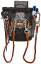 D-lenkkiä työkalujen ja karabiinien kiinnitykseen. Kaksi lenkkiä pitkien työkalujen ripustamiseen. Kahdeksan työkalutaskua.