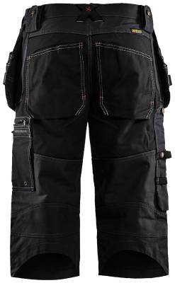 Kaksi naulataskua Cordurasta, työkalulenkit, voidaan laittaa housujen sisään. Sivutaskut. Kaksi takataskua palkeella. Vasaralenkki. Vahva metallinen vetoketju. Tasku lahkeessa. Vahvistettu mittatasku, kynätaskulla ja kahdella puukkolenkillä. Reisitasku ja puhelintasku vettähylkivää materiaalia. Kynätasku ja ekstratasku. Ruuvimeisselitasku oikeanpuoleisessa naulataskussa. Cordura-vahvistetut polvisuojataskut kahden polvisuojan asettamiseen. Piilotettava henkilökorttitasku. D-lenkki edessä. Esipesty.